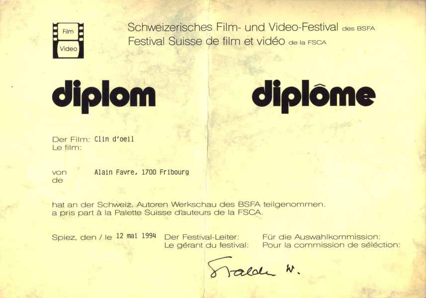 Festival Suisse de Film et Vidéo, Spiez 94, mai 1994